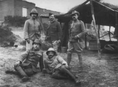 Киплинг (вверху справа) с британскими офицерами на фронте Англо-бурской войны