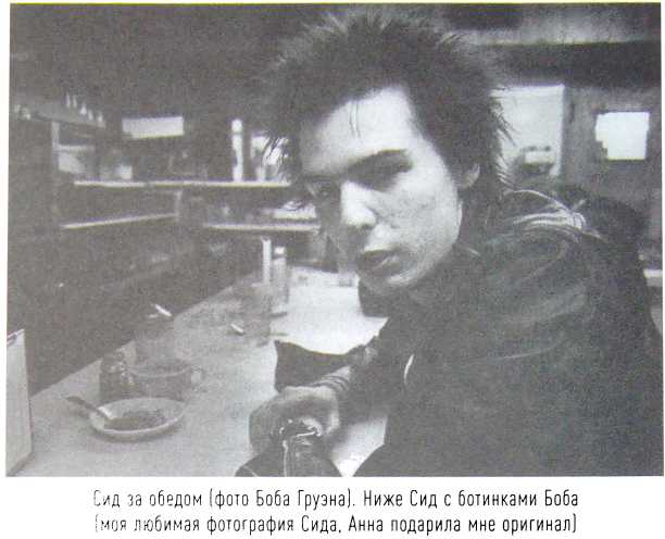 Первая о том, как Сид возжелал мотоциклетные ботинки фотографа Боба Груэна. Решив, что не может без них жить, он приставил к горлу спящего Боба нож. К счастью, Боб вовремя проснулся. Сделка состоялась незамедлительно, и ботинки перекочевали к новому владельцу. Следующая история про обед в придорожной закусочной. Сид уминал яичницу с ветчиной, когда к нему прицепился какой-то ковбой и стал опускать шуточки по поводу его внешности. Дабы показать парню, кто тут на самом деле крутой, Сид вытащил из кармана нож, располосовал себе руку и благополучно продолжил жевать ветчину уже вперемешку с собственной кровью. Парня как ветром сдуло. Финальная история из этой впечатляющей трилогии рассказывает, как однажды после выступления к Сиду подкатила семейная парочка и парень сообщил, что его жена мечтает с ним, Сидом, переспать. «Сделай так, чтобы она тебя надолго запомнила» — примерно так это звучало. За язык никто никого не тянул, и Сид в точности исполнил то, о чем его просили. Он пригласил даму в номер, стянул штаны и опорожнил кишечник точнехонько ей на грудь.