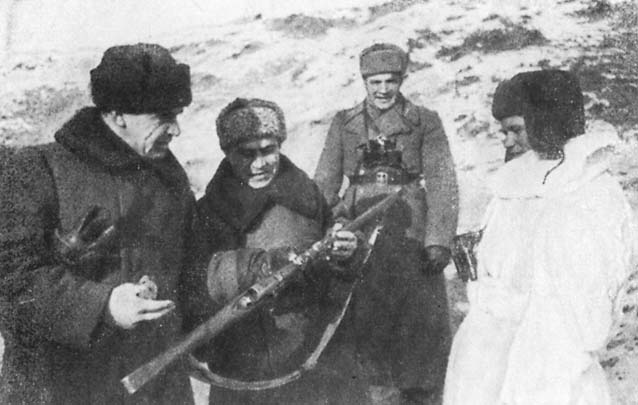 Генералы В. И. Чуйков, К. А. Гуров и снайпер В. Г. Зайцев. 1942 г.