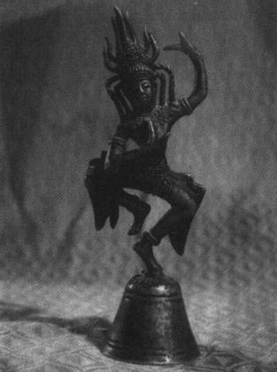 Разумеется, экзотика не сводилась исключительно к фонетике: были и волнистые пагоды, и гигантские статуи («Будда, словно в золоченом скафандре, вел громадный корабль»), и джунгли, и храм Ангкор — одно из крупнейших буддистских культовых сооружений. Здесь, насмотревшись диковинок, он приобрел издающий серебристый звон колокольчик с танцующим божком: на ногах у него крылышки.