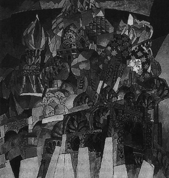 Храм Василия Блаженного — прохановский Руанский собор, фасад которого, как известно, Моне писал двенадцать раз, каждый раз заставая его в новом освещении, пытаясь передать впечатление от него. И если импрессионизм Моне связан с представлением о несовершенстве глаза, то импрессионизм Проханова, тоже живописца цвета и света, — с его уверенностью в неиссякаемости источника энергии, заключенного в строении. Оно настолько совершенно в своем цветовом разнообразии, инаковости и символичности, что в состоянии бесконечно питать художника, снабжать его метафорами; храм — мощная метафорическая машина, генератор творческой энергии, фабрика галлюцинаций, источник сюрреалистических образов, изменяющий мир, сознание наблюдателя — и видоизменяющийся сам.