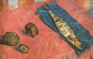 — Помнишь натюрморт Кузьмы Петрова-Водкина «Селёдка»? Он написан в голодном тревожном 1918 году. Сейчас, глядя на твоего леща, я вспоминаю эту картину. На том натюрморте селедка лежит на синей оберточной бумаге, излучая золотистый цвет, у тебя же лещ висит на голубовато-серой стене. И в том и в другом случае золотистый цвет держит тональность всей картинной плоскости. Главное, в твоей работе я усмотрел четко выраженное время и состояние, которое точно отражает сложный период распада Советской страны. Так и в 18-м году, в период развала Российской империи, Гражданской войны и голода, художник своей «Селедкой» отразил эпоху. Толя, конечно, это сопоставление, мягко говоря, натянутое. Но я хочу сказать, что работа у тебя получилась удивительно созвучной нашему нынешнему положению. Что касается техники живописи, могу сказать, что она достаточно профессиональна. У тебя есть способности, ты чувствуешь колорит. Это поможет, как мне кажется, и в твоей актерской профессии. Да, да, Толя. Не удивляйся. Хочу напомнить широко известную фразу: «Живопись — мать всех искусств». Кто знает, возможно, поэтому режиссеры Георгий Данелия и Станислав Говорухин пишут картины и даже устраивают свои персональные выставки. А такие корифеи нашего кино, как Лев Кулешов,Александр Довженко, Михаил Ромм, вообще вышли из художников. А сейчас, Анатолий, пойдем со мной в наш генеральский особняк, я подарю тебе этюдник с набором красок.