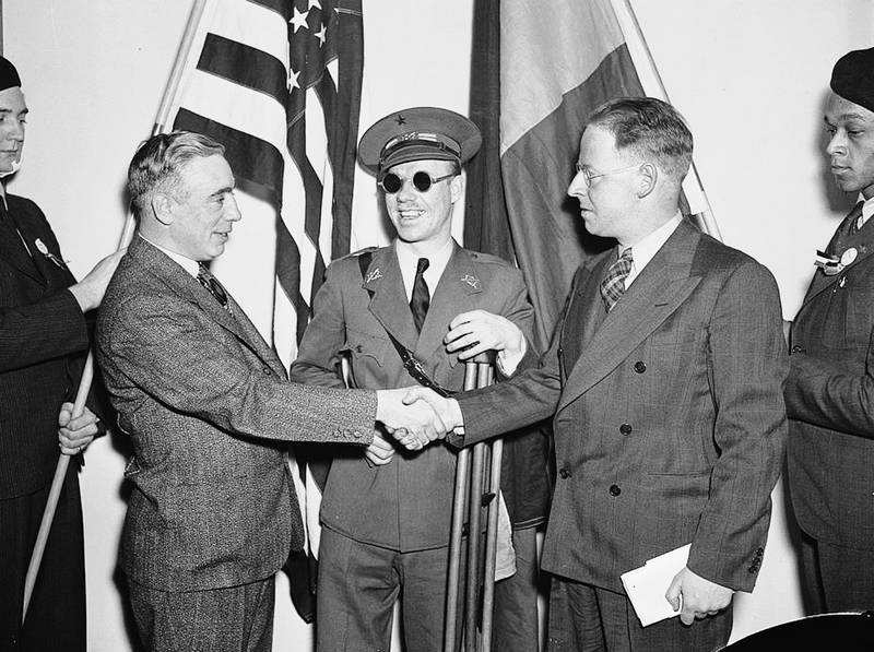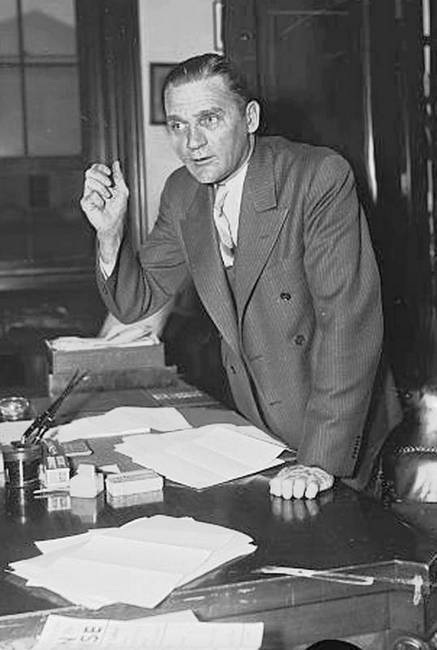 Сенатор-республиканец от Северной Дакоты Джеральд Най выступает на слушаниях 1934 года по вопросам военной промышленности, в ходе которых были разоблачены бесчестные махинации и вскрыты колоссальные прибыли, полученные американскими компаниями по производству оружия и боеприпасов в военное время. «День ото дня комитет выслушивал оправдания рэкетиров международного класса, опустившихся до наживы на вооружении всего мира», – заявил он. Благодаря проведенному им расследованию вскрылась страшная правда о том, что американские компании помогали перевооружить нацистскую Германию.