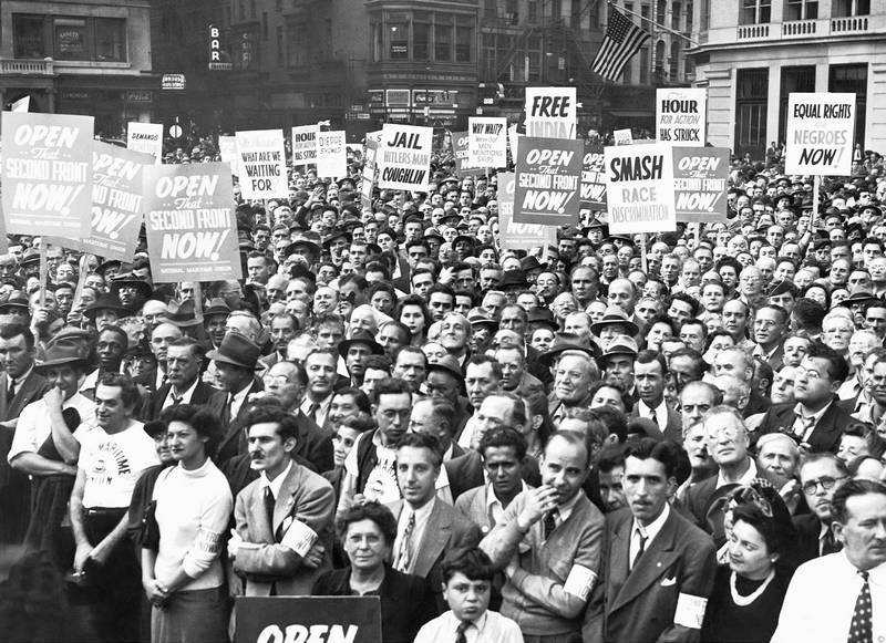 Массовые выступления охватили всю Америку. 24 сентября 1942 года 25 тысяч человек приняли участие в демонстрации на нью-йоркской площади Юнион-сквер, требуя, чтобы США открыли второй фронт в Западной Европе и тем самым ослабили страшное давление немцев на Россию.