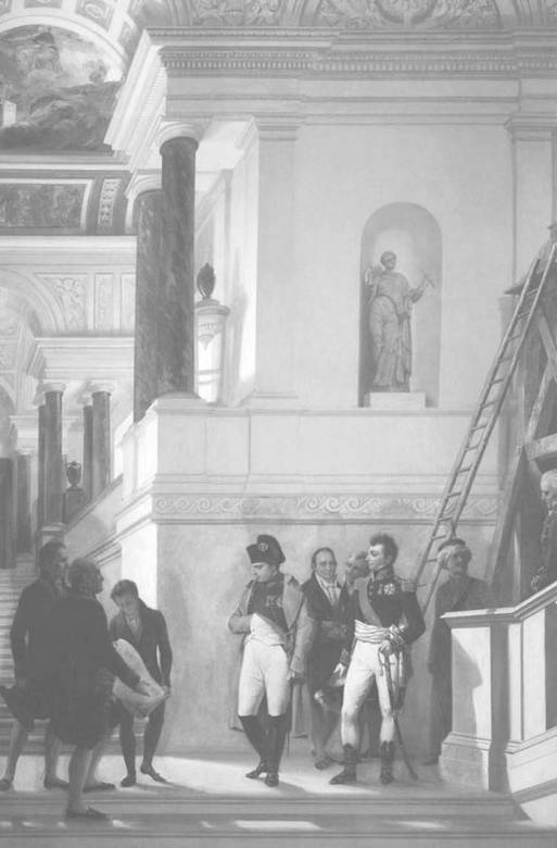 Фрагмент работы Л.-Ш. О. Кудэ «Наполеон в Лувре в сопровождении архитекторов Персье и Фонтена»