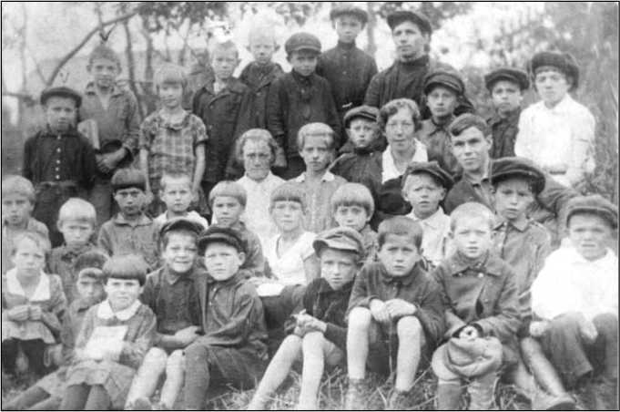 На фотографии четвёртый класс Муромцевской сельской школы, а в пятый класс они пошли учиться в другую, среднюю школу на территории фабрики. Учились они до начала войны, переходя из школы в школу. На фото – учительница – Мария Васильевна Смиренская – с белым воротником.