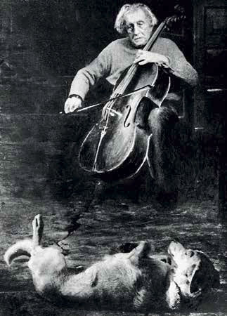 Посмотрите на снимок. Звуки виолончели заставляют собаку принять блаженную позу, закрыв глаза, она слушает музыку, она наслаждается звуками.