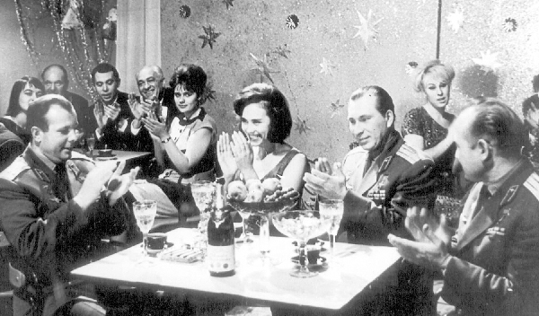 Звездный «Новогодний огонек» 1965 года. Лариса Мондрус в окружении космонавтов. Слева – Юрий Гагарин.