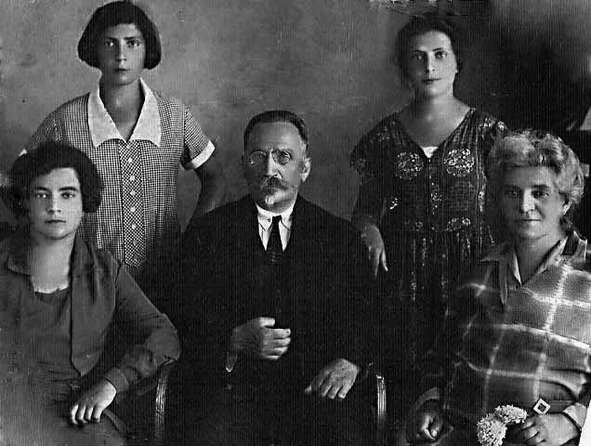 Мои бабушка и дедушка с тремя дочерьми. Сидит Шурочка, стоят слева Анна, а справа Рахиль.