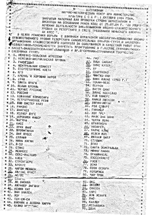– Это все фигня. Важнее то, что преимущество Макса в теоретической подкованности ты несколько преувеличил. Я же окончил музыкальную школу по классу скрипки, ту же, что и Фома, причем на два года раньше, и теорию музыки сдавал на выпускных экзаменах, также как и основы гармонии. Понял? Теперь о моих группах. Вот «Выход», который мы потом собрали в Доме работников здравоохранения, был делом уже серьезным. Альбом записали, на хороших концертах выступали… Меня даже Свин в «Автоматические Удовлетворители» приглашал! И, если бы не «Секрет», быть мне панком…
