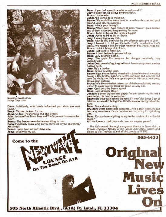 Одно из первых интервью группы The Kids в журнале The Scarlet Bugle