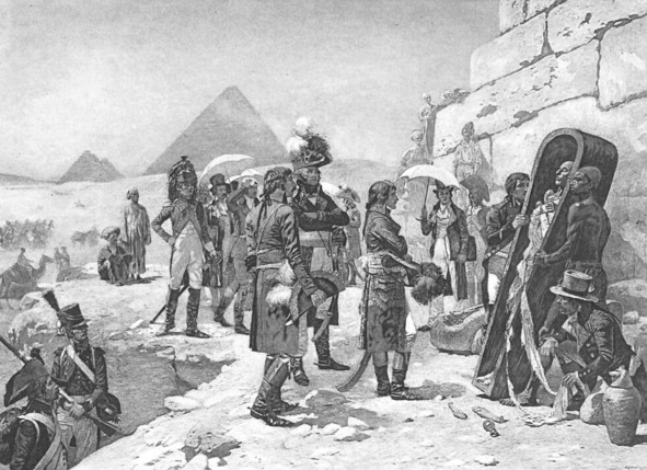 Наполеон, разглядывающий мумию Рамсеса у стен гробницы.