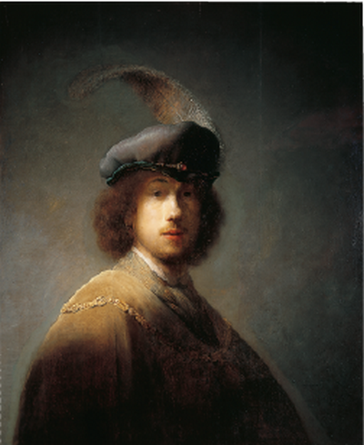 Рембрандт ван Рейн. Автопортрет в берете с пером. 1629. Дерево, масло. 89,5 ? 73,5 см. Музей Изабеллы Стюарт Гарднер, Бостон