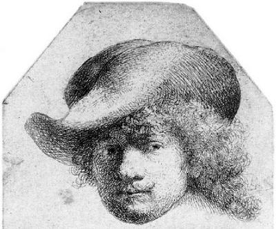 Рембрандт ван Рейн. Автопортрет в фетровой шляпе и расшитом плаще. 1631. Офорт, первое состояние. Британский музей, Лондон
