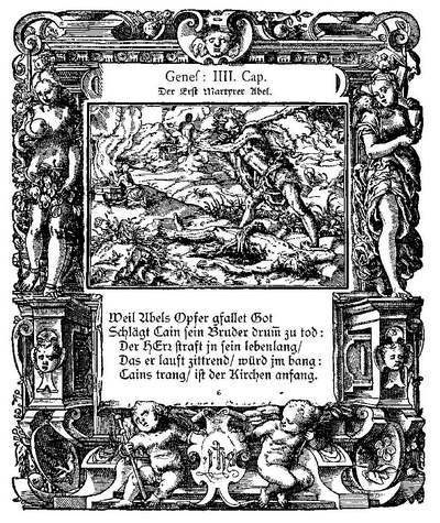 Тобиас Штиммер. Каин и Авель. Гравюра на дереве из цикла «Библейская история в новых образах». Базель, 1576. Колумбийский университет, библиотека Эйвери, Нью-Йорк