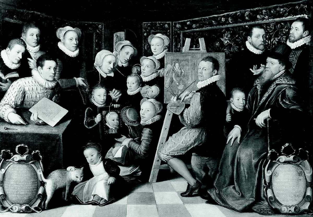 Редкостной образованностью могли похвалиться уже предки Отто. Его отец Корнелис ван Вен, подобно Яну Рубенсу, ученый юрист и член магистрата, уверял, что происходит от побочной линии герцогов Брабантских, хотя в какой-то момент его семья перебралась в дождливую и влажную Зеландию. Корнелис ван Вен вырос в Лейдене, бургомистром которого сделался в 1565 году, в ту пору, когда религиозный раздор бушевал, точно морская буря. О его богатстве и высоком социальном статусе свидетельствовал прекрасный дом на площади Синт-Питерскеркхоф, куда он переехал вместе со своей семьей. Однако, в отличие от многих современников, Корнелис сохранил безрассудную и бескомпромиссную верность своей Церкви и королю, даже когда по крайней мере один из его десяти детей, Симон, решил принять кальвинизм. После того как Лейден осадили войска Альбы, а жители в ярости обрушились на Католическую церковь и происпански настроенных сограждан, чему не приходится удивляться, ван Вену пришлось покинуть город. В октябре этого года он уехал из Лейдена, как можно предположить, не без спешки, и отправился в Антверпен. Впрочем, возможно, ван Вен убедился, что жесточайшая католическая реакция, достигшая тогда апогея, ничуть не лучше своей протестантской противоположности, ибо в феврале 1573 года он просил выпустить его якобы в Ахен, но в действительности перевез семью в Льеж, под юрисдикцию князя-епископа Герарда де Грусбека. Именно там Отто, которому в ту пору исполнилось двенадцать лет, в значительной мере получил образование, сделавшись протеже поэта и художника Доминика Лампсония.