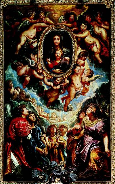 Питер Пауль Рубенс. Мадонна с Младенцем в окружении ангелов (Мадонна делла Валличелла). 1608. Шиферная доска, масло. 425 ? 250 см. Церковь Санта-Мария ин Валличелла, Рим