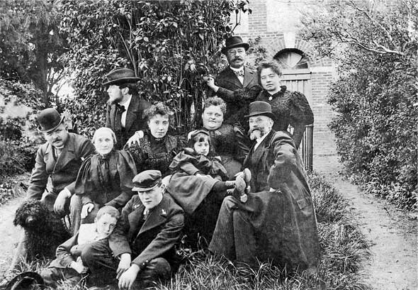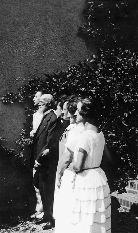 Дюшаны в профиль в Вёль-ле-Роз. Ок. 1910. Справа налево: Сюзанна, Ивонна, Магдалена, мадам Дюшан, Дюшан-отец, Марсель
