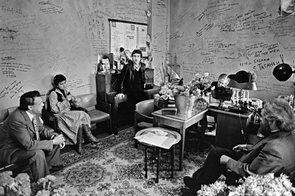 В театре на Таганке, в кабинете Юрия Петровича Любимова. Слева направо: Николай Дупак, Каталин Любимова-Кунц, Владимир Высоцкий, Юрий Любимов и Борис Можаев