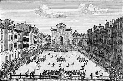 В один из дней русских посланников повезли смотреть традиционную командную игру в мяч – giuoco del calcio – на площади Санта-Кроче: