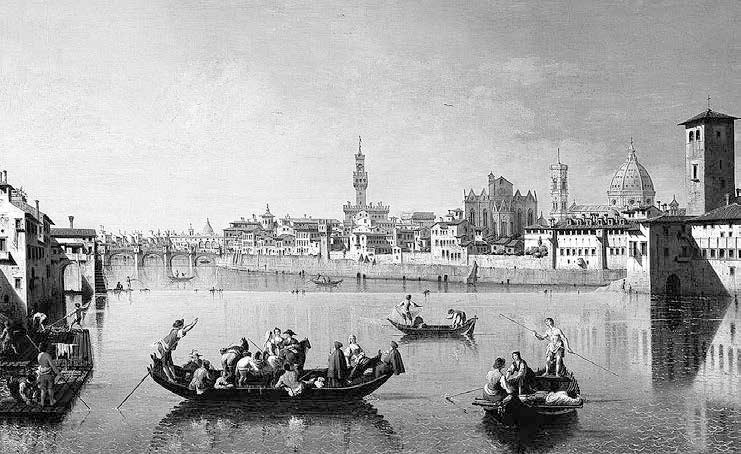 «Флоренция есть место великое между великих гор на ровномместе. Ивнемобитаетграндука, тоестъвеликий князь, которой имеет корону, то есть венчанный, имеет под собою и другие места немалые, и владетелъство его немалое и многолюдное. Флоренция город каменный, древнего строения, с башнями каменными и ворота проезжие древней моды, однакож изрядного мастерства. Весь город Флоренция вымощен камнем, и палаты есть высокие, в три и в четыре жилья в высоту, а строены просто, не по архитектуре. Сквозь Флоренцию течет река немалая, которая называется Арно. Чрез ту реку сделаны четыре моста каменных, великие, на каменных столпах, между которыми один зело велик, на котором построен серебреной ряд. Монастырей и церквей во Флоренции всех с лишком 200, которые изрядное имеют в себе украшение и богаты серебром и всякими церковными утворами зело…» Понравились Толстому и жители города: