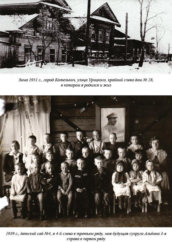 Жили мы в Котельниче на улице Урицкого в доме № 28. Дом был с мезонином. Два окна слева на первом этаже – это окна нашей комнаты. Ещё два окна выходили во двор. В этом доме я родился, в этом же доме меня крестили, здесь прошло мое детство и юность. Сейчас этого дома нет, на его месте построен большой панельный пятиэтажный дом.