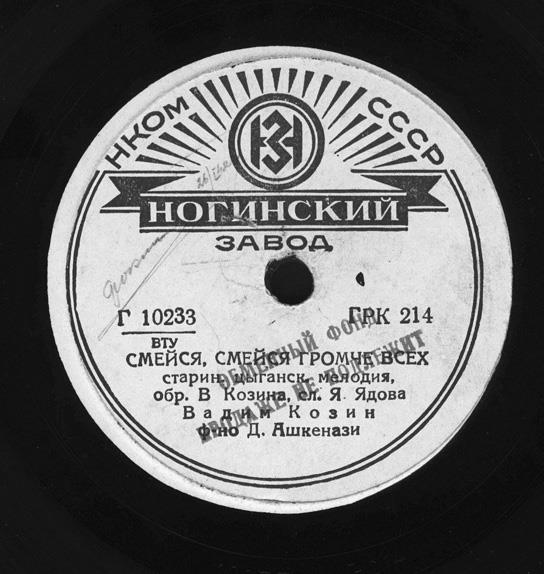 Этикетка довоенной пластинки В. А. Козина