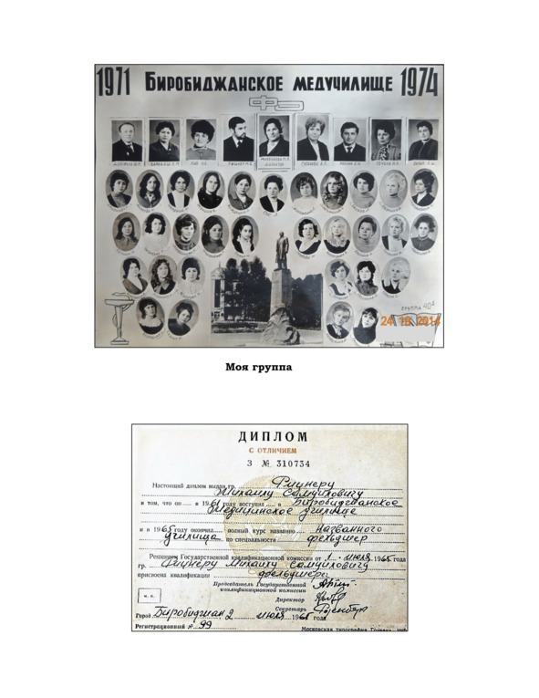 Я, естественно, любил своих родителей и не помню скандалов между ними. В целом родительский дом был теплым и дружелюбным. Папа любил в воскресенье выпить после бани «чекушку» водки (250 мл), что маме не нравилось. Родители, если была нужда, разбирались сами, без нашего участия. Авторитет отца в семье никем не оспаривался, мама покрывала наши шалости и вела дом. Когда подросла Соня, к ее мнению стали прислушиваться родители, но не мы со Славой. Шкодничали мы на пару и врозь. Соня вынесла многие наши проделки. Мы вытряхивали сумку с ее учебниками по анатомии, хирургии, акушерству и другими. Рассматривая картинки, мы познакомились с половыми различиями между мужчинами и женщинами, узнали, как рождаются дети, и многое другое. Обнаружив у сестры шприцы и иголки, мы практиковались делать уколы, используя воду и подушки. Мама не сразу догадалась, почему в доме отсырели подушки. Так пробуждался у меня интерес к медицине. Славе нередко доставалось за двоих. Наши разборки с братом привели к тому, что родители все чаще стали подумывать, как нас развести. Случай подвернулся – я поступил учиться в Биробиджанский медицинский колледж. Мне не было полных 14 лет, когда я «вылетел из гнезда» и дозревал как личность уже вне дома.