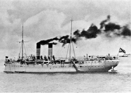 С началом Русско-японской войны 1904–1905 гг. 4 февраля 1904 г. Эдуард Егорович был назначен в плавание на суда Тихого океана. Во время этой войны Э. Е. Арнгольд участвовал в обороне Порт-Артура, будучи судовым врачом минного заградителя (по терминологии того времени – транспорта) «Амур», крейсера 2-го ранга «Забияка», заведующим II санитарным отрядом, лазаретом «Амура» на дачных местах (район Порт-Артура)[18]. Минный транспорт «Амур» принимал активное участие в морских операциях во время обороны крепости. Он и однотипный «Енисей» (погибший 29 января 1904 г. на собственном минном заграждении) считались лучшими в мире минными заградителями специальной постройки. «Амур» провел семь минных постановок, выставив 439 мин. На его заграждениях противник потерял два броненосца, посыльное судно, истребитель и миноносец. 3 июня 1904 г. «Амур» наскочил на камень и получил повреждения (был затоплен ряд отсеков)[19]. Ремонтировать корабль не стали в связи с недостатком мин в Порт-Артуре, и в дальнейшем он использовался как база траления, а часть его личного состава перевели на сухопутный фронт[20]. Там же был развернут судовой лазарет. Во время одного из обстрелов, находясь на борту «Амура», Э. Е. Арнгольд был легко ранен в руку.