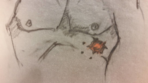 …Входное отверстие было как раз на сантиметр под левым соском, с четкими краями, слегка обожженное порохом. Я однозначно бы сказал, что пулевое, как и признался Андрей, если бы… если бы не три, отступя пол сантиметра от входного отверстия, входные отверстия овалом, такие, какие оставляет дробь-картечь! Выходное отверстие в таких случаях огромное, с выбросом частей ребер и легкого. В заключении я написал, что заряд патрона, вероятно, был комбинированный – пуля и три дробинки-картечи. Если бы дроби было больше, она порвала бы края выходного отверстия. Предусмотрительно я вырезал входное отверстие с входом картечи и заспиртовал: