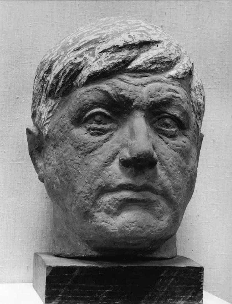 И вот, увидев в мастерской проложенный в глине портрет, он обрушил на меня целый поток различных мыслей и идей относительно современного искусства и портрета. Не буду пересказывать смысл этого разговора. Результатом явилось то, что я сломал начатую работу и потом больше года пытался найти решение, которое соответствовало бы образу этого сложного и своеобразного человека. Несколько этюдов к этому портрету находятся и сейчас в моей мастерской.