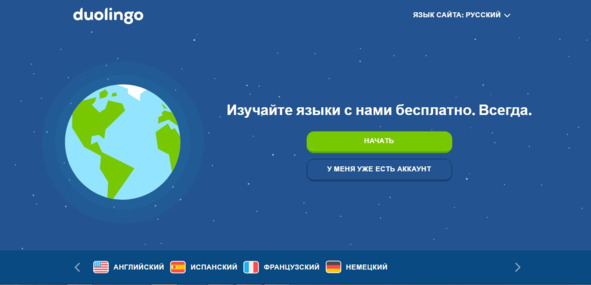 2. Изучение основ языка. Не надо сразу брать толстый, основательный учебник с максимальным охватом слов и грамматики. Начните с простого самоучителя. Главное – должно быть аудиоприложение. Вместо книги с аудио, на этом этапе можно обратиться к обучающему бесплатному сайту duolingo.com :