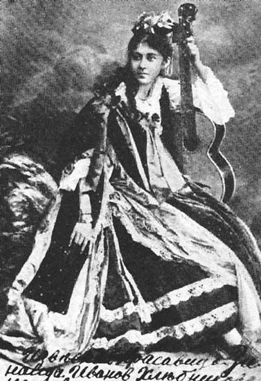 «…Во дворцах аристократов, в усадьбах помещиков, домах потомственных дворян распевали цыганские романсы, песни. Одеваясь под цыган, учились плясать как цыгане, играть на гитаре. Семиструнная гитара стала любимым инструментом почти в каждой семье… После 1812 года в Москве вошли в моду парадные обеды в трактирах, на которые обязательно приглашался хор цыган, – рассказывает патриарх цыганской культуры И. И. Ром-Лебедев. – Это было очень красивое зрелище: цыганки приходили празднично одетые, в расшитых золотом шалях, пристегнутых к одному плечу, в монистах и серьгах из мелких золотых монет. И плясали и пели с огромным воодушевлением».
