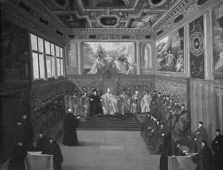 В 1655 г. новый, 100-й по счету, дож Венеции, Карло Контарини, ведший упорную войну с Османской империей за стратегически важную венецианскую крепость Кандию (нынешний Ираклион) на острове Крит, разослал посольства во многие христианские государства Европы с просьбой о поддержке в войне с турками, подчеркивая, что потеря Кандии станет ударом для всего христианского мира. Ко двору русского царя Алексея Михайловича приехал венецианский посол Альберт Вимин да Ченеда с просьбой послать на турок донских казаков, а заодно дозволить венецианским купцам беспошлинную торговлю в Архангельске. Посол оставил подробные мемуары о Московии, где, отмечая могущество и богатство московского государя, в частности, писал:
