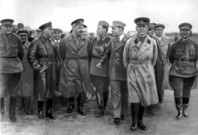 Руководители партии среди авиаспортсменов на Тушинском аэродроме. 1935 год.