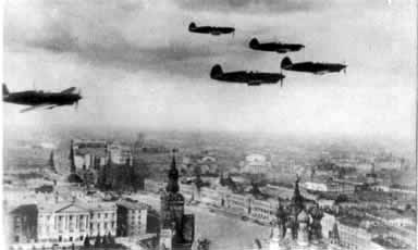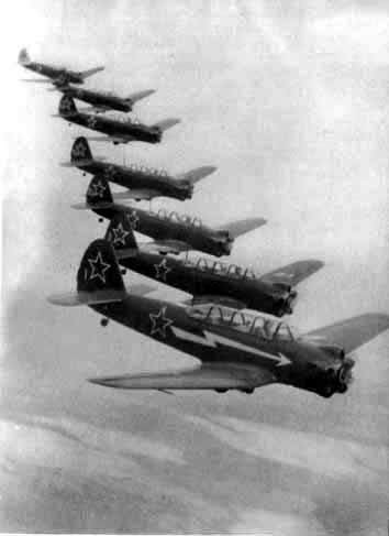 Спортсмены Центрального аэроклуба на самолетах ЯК-18. Тренировка перед парадом.