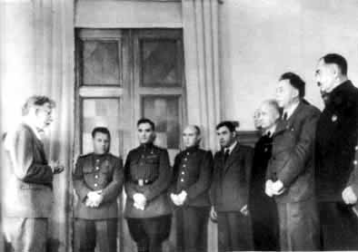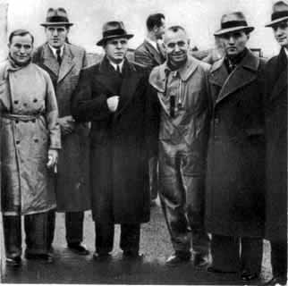 Группа советских специалистов на встрече с немецким конструктором Мессершмиттом (второй слева). 1940 год.