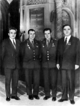 В Георгиевском зале Кремля. Слева направо: А. И. Микоян, Ю. А. Гагарин, Г. С. Титов, А. С. Яковлев.