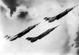 Сверхзвуковые реактивные самолеты ЯК-28 в полете.