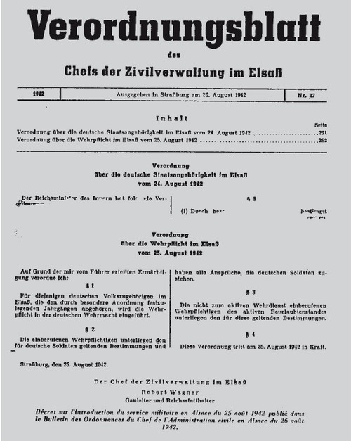 Нацистский декрет о введении воинской повинности в Эльзасе от 25 августа 1942 года