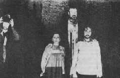 Ещё запомнилась последняя у Пушкина сцена "Кремль. Дом Борисов. Стража у крыльца". Сцена запертых в доме Федора и Ксении – детей Годунова. Их играли Наташа Сайко и Олег Казанчеев. В этой сцене дважды "выстрелила" гладко оструганная доска, валявшаяся на сцене с самого начала спектакля. Думалось поначалу: вынужденная мера. Царственный жезл не один раз по ходу спектакля втыкается в пол, так чтобы не портить пол на новой сцене, и приспособили эту доску. Но – в этой сцене доска вдруг ложится на спинки двух стилизованных стульев (один уже успел побывать троном в уме Самозванца, другой на протяжении всего спектакля служил троном Годунову – Николаю Губенко). А Наташа с Олегом – исполнители ролей годуновских детей – оказываются под этой доской, прижатые ею к полу. Вот по кому -по детям в первую голову ударила безудержная игра без правил, ставка в которой – высшая власть.