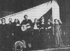 Этим, собственно, заканчивается пролог. Дальше со сцены цыганок (Славина и Жукова) начинается более или менее обычное поэтическое представление с темой бытия и темой любви, военной темой и "блатной стариной", с песнями-сказочками и песнями-сатирами…