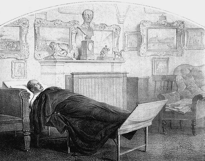 Император Николай I на смертном одре. Рисунок В. Тимма. 1855 г.