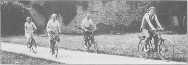 Велопрогулка. Слева направо: Е.Майер, И.Кнорринг, Д.Кобяков, Ю.Софиев. 1928. Архив Софиевых-Кноррингов. Публикуется впервые