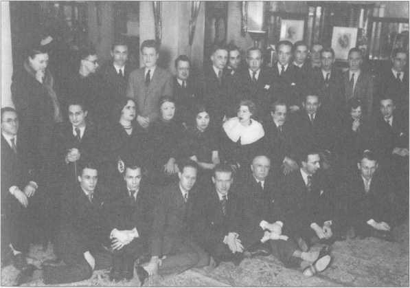Слева направо: Е.Майер, А.Берлин, Д.Монашев, Ю.Софиев, С.Луцкий, В.Мамченко, А.Бибиков, Юниус, А.Ладинский (пред. Союза), В.Гансон, Е.Сосинский, А.Гингер, Г.Газданов.