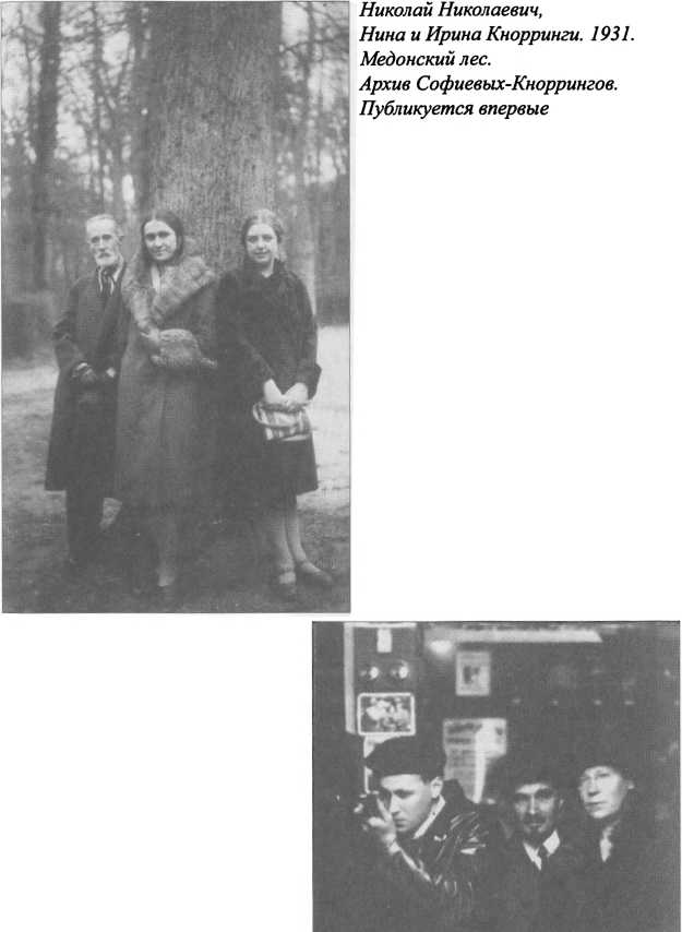 После концерта в Русском доме (слева направо): В.К.Мещерская, Т.Ф.Мантейфель, Н.Н.Кнорринг, Игорь Софиев, ГИ.Шевич (скрипка), И.А.Энери, Б.В.Кологривов. С.-Женевьев-де-Буа. 1 июля 1938. Архив Софиевых-Кноррингов. Публикуется впервые