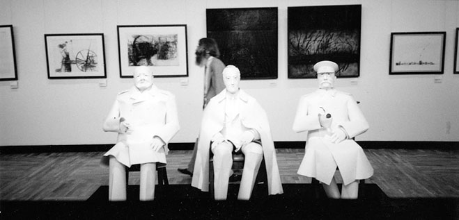 В том же 1991 году я повела Витю, большого знатока и любителя живописи, в Третьяковскую галерею на Крымском Валу, которую для себя тогда открыла. Мне хотелось убедить его в том, что там не сплошной соцреализм, но и лучшая в мире коллекция российской живописи и скульптуры периода авангарда. В другой раз мы с Витей и его женой Машей Поливановой осмотрели недавно открывшуюся экспозицию постсоветского искусства; на этой фотографии Виктор Маркович стал частью скульптурной группы участников Ялтинской конференции.