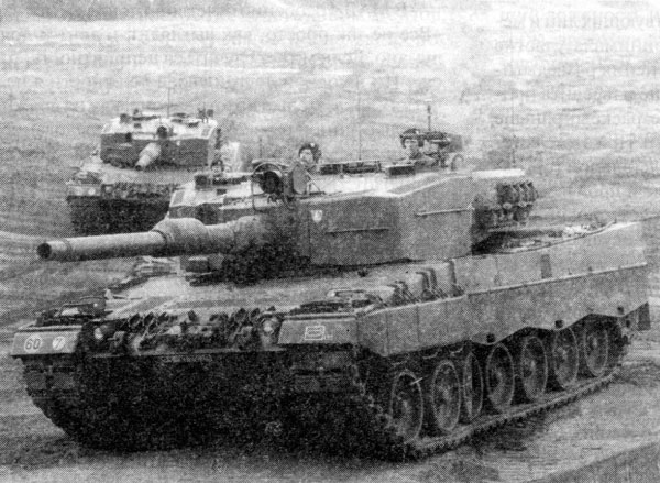 Немецкий боевой танк «Леопард II.» в действии. На снимке: во время учений в середине 1980–х гг.