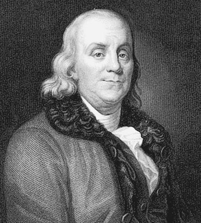 Франклин Бенджамин (1706–1790) – американский ученый, изобретатель, просветитель, политический деятель. Был 15-м ребенком в семье небогатого владельца мыловарни, рано стал помогать отцу, а с двенадцати лет – брату в типографии. В 17 лет работал печатником, побывал в Англии, самостоятельно овладел основами философии, естествознания. С 1729 г. издавал в Филадельфии «Пенсильванскую газету», ставшую самой распространенной в Северной Америке. Пропагандировал идеи французских просветителей, основал ряд общественных учреждений, философское общество. В должности директора департамента почт колоний организовал регулярное почтовое сообщение.
