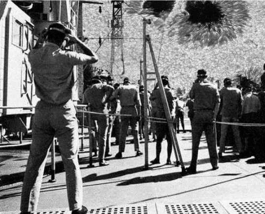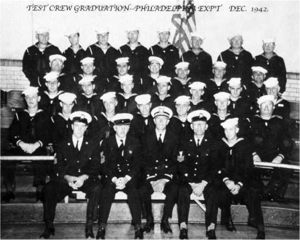 Несмотря на подпись, сделанную, скорее всего, гораздо позже, здесь изображен третий экипаж, конвоировавший грузы на африканское побережье. Именно ветераны этого экипажа присутствовали на встрече, организованной в конце 1990-х годов контрразведкой ВМС США. Естественно, что они ничего не могли сказать ни о проекте «Радуга», ни о ходе Филадельфийского эксперимента.